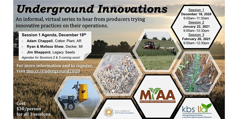 Underground Innovations is organized with assistance from Michigan Agriculture Advancement, Michigan State University’s KBS LTAR program, and the Michigan Environmental Council. Support is provided by the Erb Family Foundation. Join us for Underground Innovations 2020!